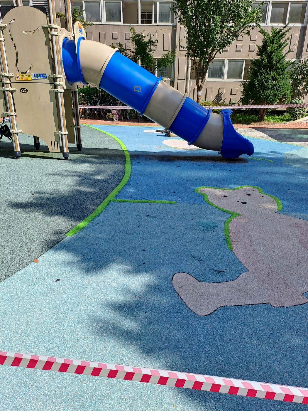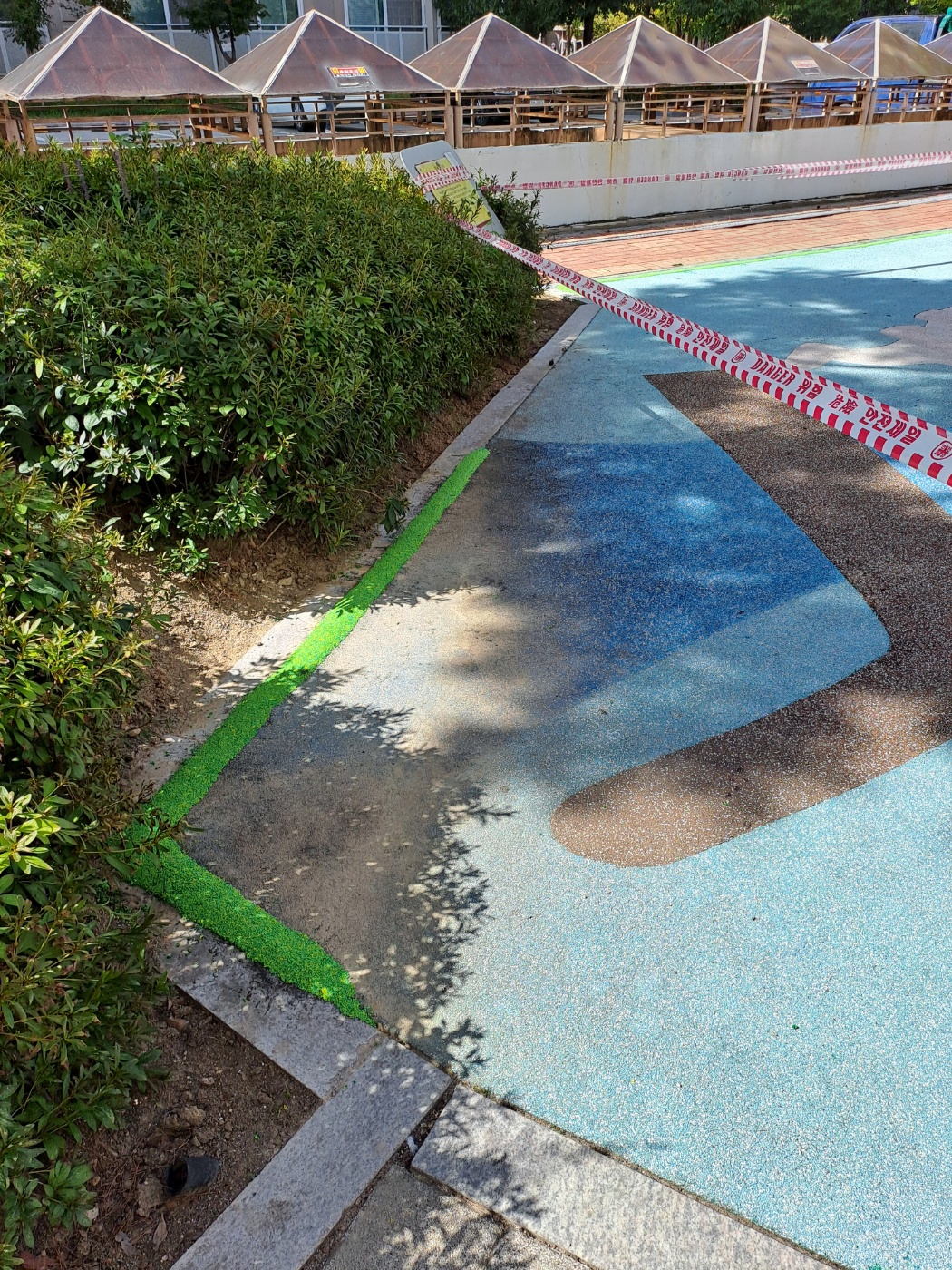 오늘 현장은 강원도 속초시 ㅇ ㅇ 아파트 단지내 어린이놀이터 바닥 벌어짐 현상으로 안전에 문제가 있어서 저희 나린건설 에서 현장 으로 급파 튼튼 하게 마무리 해 드렸습니다.