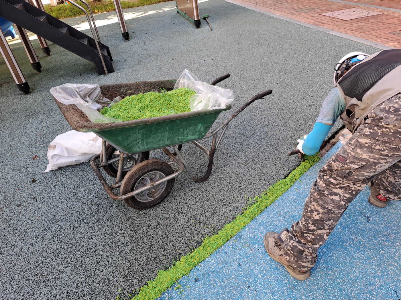 어린이 놀이터 친환경탄성고무칩포장 보수 전문 나린건설 인사드립니다.