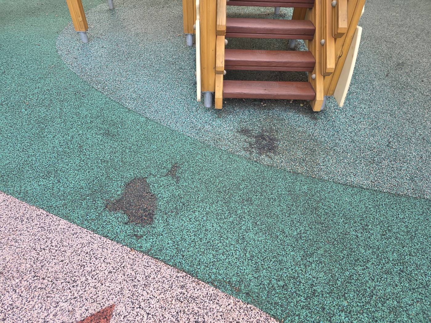 오늘은 광주시 ㅇ ㅇ 소재 아파트 단지내 어린이놀이터 바닥 훼손으로 인한 부분 친환경 탄성고무칩 보수 작업을 진행했습니다.