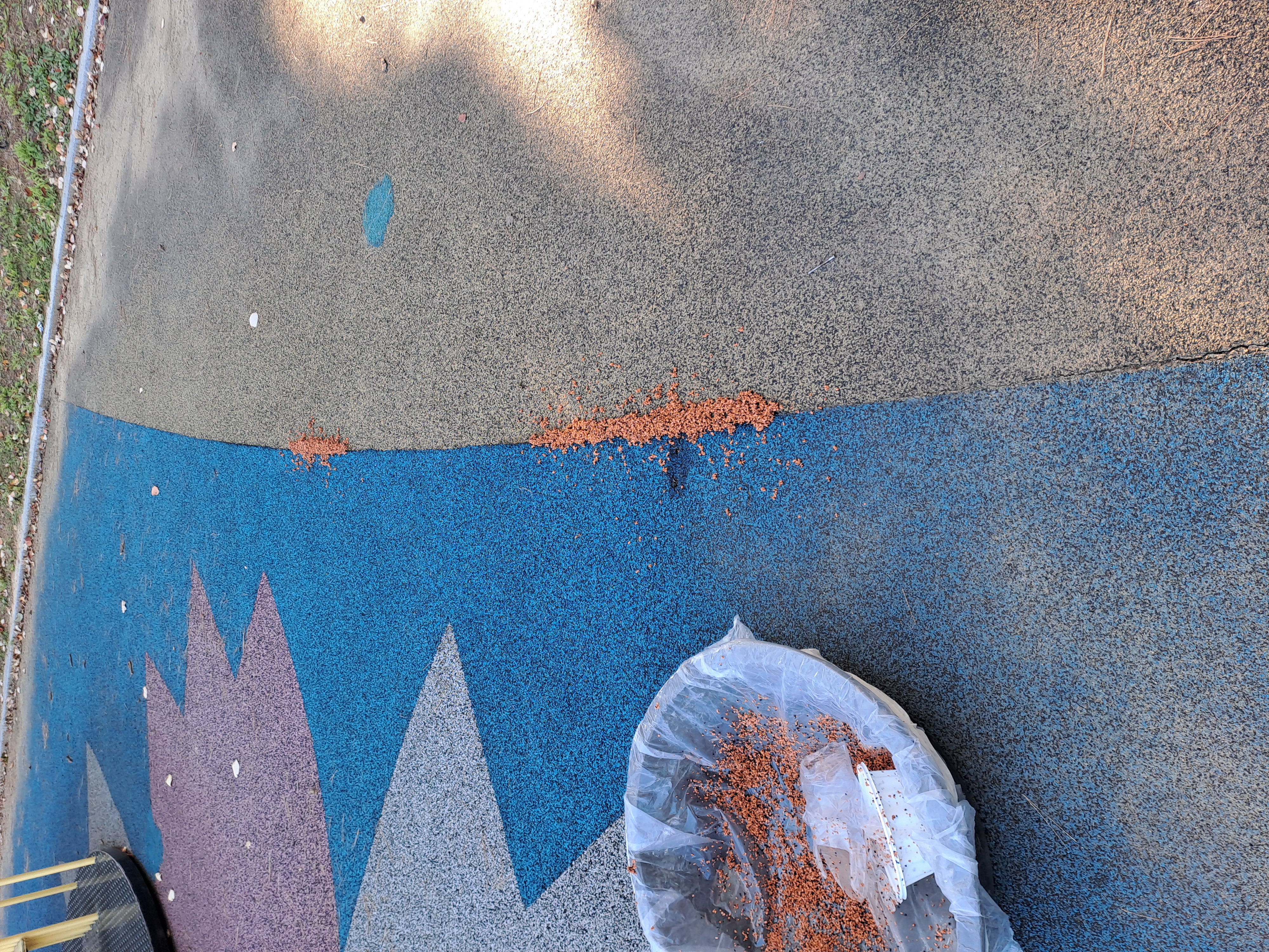 오늘은 세종시 ㅇㅇ소재 어린이놀이터 바닥 훼손으로 인한 부분 친환경 탄성고무칩 보수 작업을 진행했습니다.
