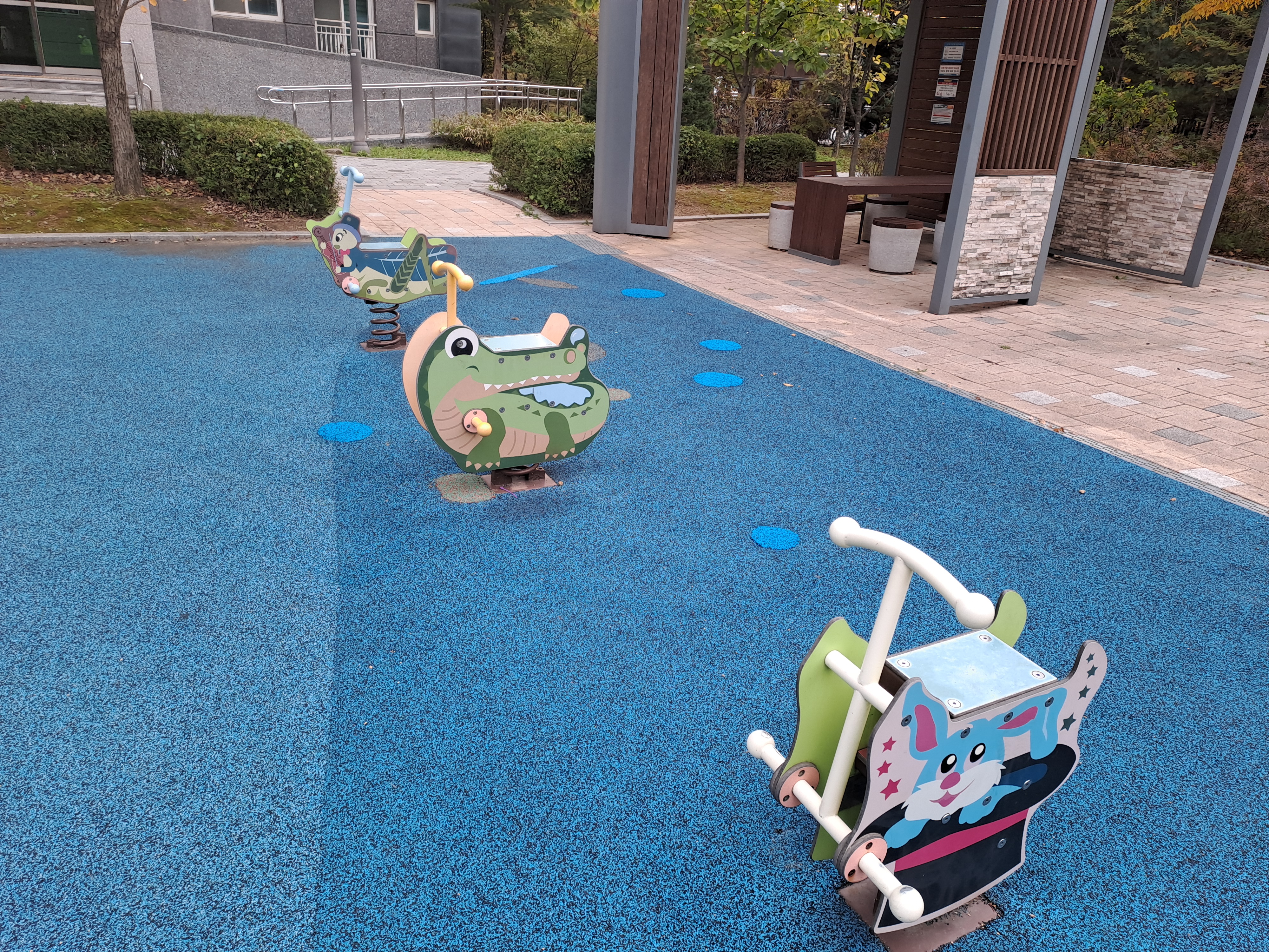 오늘은 천호동 ㅇㅇ아파트 단지내 어린이놀이터 바닥 훼손으로 인한 부분 친환경 탄성고무칩 보수 작업을 진행했습니다